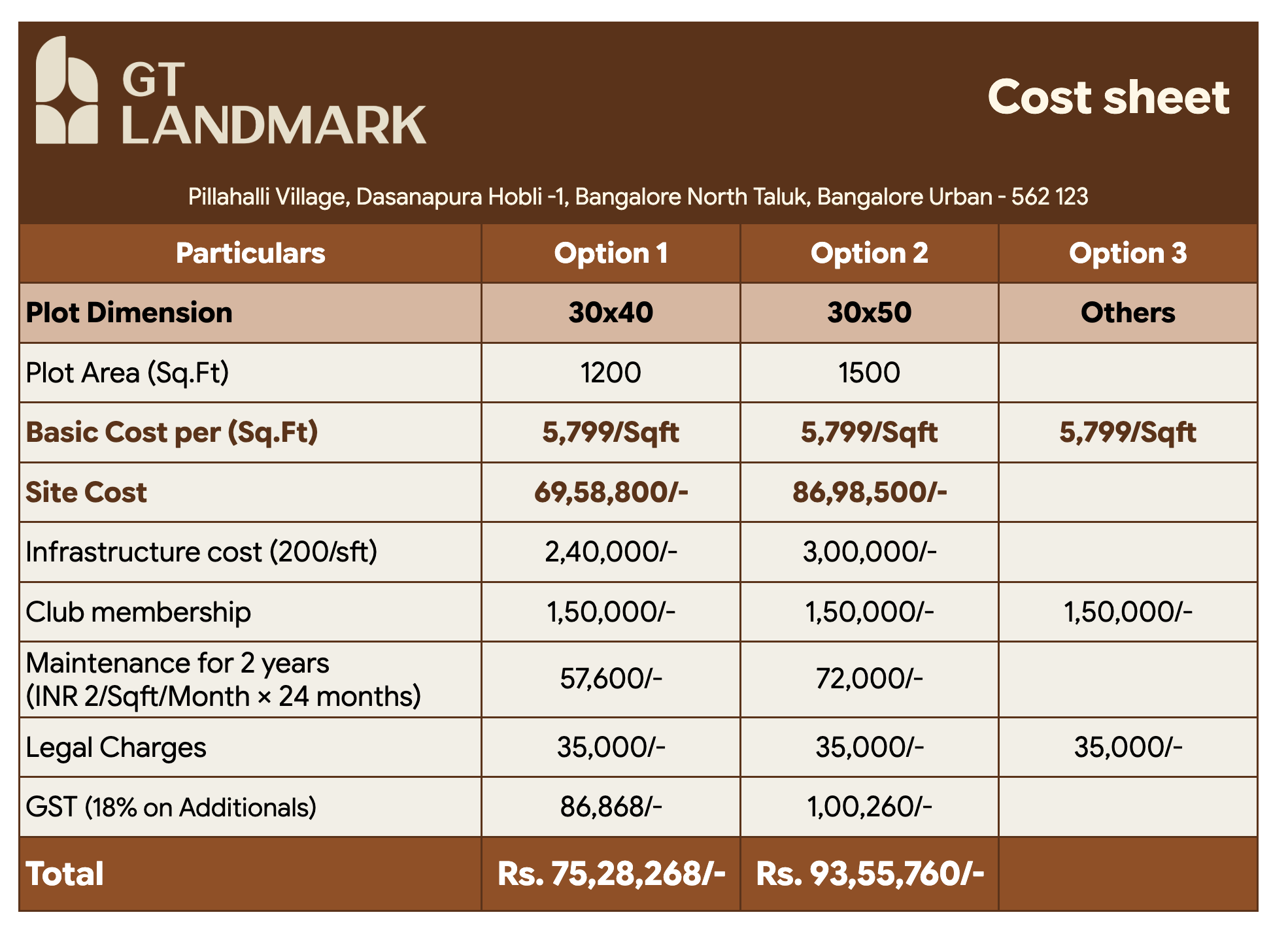 5% Premium for East-facing, North-facing, or Park-facing plots. | 10% Premium for Corner plots. | 5% Premium for Plots facing 100 ft or 60 ft roads.